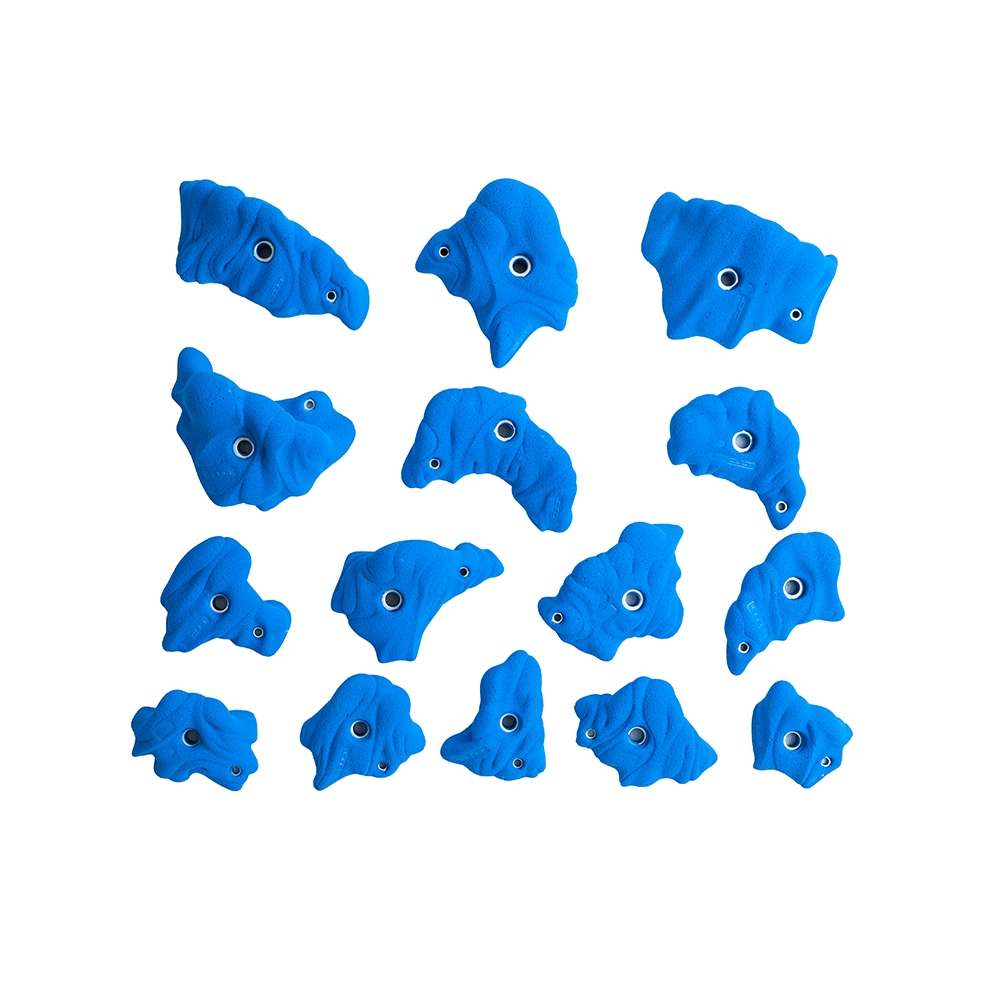 אחיזות קלות ונוחת לאחיזה בעלות עיצוב ייחודי ואטרקטיבי. סט זה יתאים לשימוש כללי בקירות ביתיים לילדים וגם למטפסים רציניים שזקוקים לסט חיובי של ג'אגים.