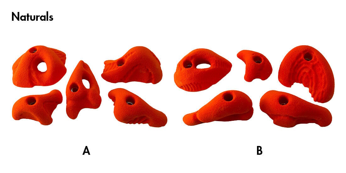 סט של 15 אחיזות בצורות שונות- כל סט הוא מגוון של אחיזות מאותה התצורה.